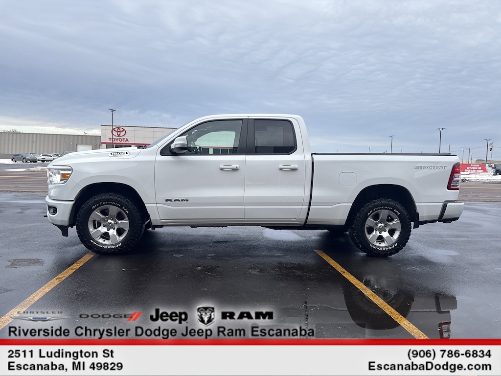 ENGINE: 5.7L V8 HEMI MDS VVT Active Noise Control System, Heavy Duty Engine Cooling, Passive Tuned Mass Damper, GVWR: 7,100 lbs, Dual Rear Exhaust w/Bright Tips, HEMI Badge, 26 Gallon Fuel Tank, BIG HORN LEVEL 1 EQUIPMENT GROUP Google Android Auto®, SiriusXM Radio Service, Bluetooth® Handsfree Phone & Audio, USB Host Flip, Rear Window Defroster, Integrated Center Stack Radio, Rear View Auto Dim Mirror, For Details, Visit DriveUconnect.com, Power Adjustable Pedals, For More Info, Call 800-643-2112, Rear Power Sliding Window, Rear Dome w/On/Off Switch Lamp, Connectivity - US/Canada, Glove Box Lamp, 4G LTE Wi-Fi Hot Spot, Exterior Mirrors w/Heating Element, Power 8-Way Driver Seat, Auto Dim Exterior Driver Mirror, Radio: Uconnect 5 W w/8.4 Display, 8.4 Touchscreen Display, Class IV Receiver Hitch, Black Premium Power Mirrors, Apple CarPlay®, Big Horn IP Badge, SiriusXM Satellite Radio, Exterior Mirrors w/Supplemental Signals, Exterior Mirrors Courtesy Lamps, Universal Garage Door, BLACK, DELUXE CLOTH BUCKET SEATS Power 8-Way Driver Seat, Bucket Seats, Full Length Floor Console, Delete LED Lamp - Floor Console Bin, Power 2-Way Driver Lumbar Adjust, ANTI-SPIN DIFFERENTIAL REAR AXLE, PROTECTION GROUP Transfer Case Skid Plate, Steering Gear Skid Plate, Front Suspension Skid Plate, Fuel Tank Skid Plate, Tow Hooks, REMOTE START SYSTEM, TRANSMISSION: 8-SPEED AUTOMATIC (8HP75). Ram Big Horn with Bright White Clearcoat exterior and Black interior features a 8 Cylinder Engine with 305 HP at 6400 RPM*.
