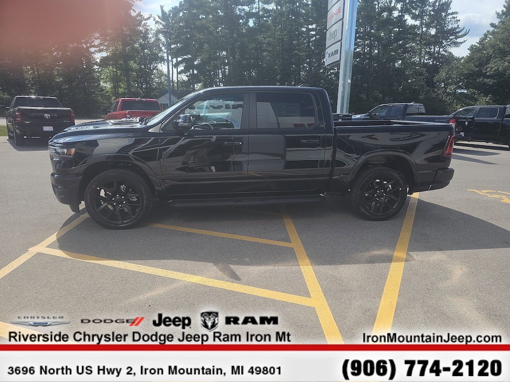 NIGHT EDITION Black Headlamp Bezels, Wheels: 22 x 9 Forged Aluminum, Tires: 285/45R22XL BSW All Season, Pirelli Brand Tires, Proximity Approach/Departure Lamps, Anti-Spin Differential Rear Axle, Accent Color Door Handles, Black Interior Accents, Body Color Front Bumper, Grille Surround 3 Black Texture 2 Black, Body Color Rear Bumper w/Step Pads, RAM Grille Badge - Black, Black Painted Exterior Mirrors Caps, Exterior Mirrors Approach Lamps, Accent Color Premium Power Mirrors, Sport Performance Hood, Black Exterior Truck Badging, Accent Color Tailgate Handle, Dual Exhaust w/Black Tips, Black Tail Lamp Bezels, LARAMIE LEVEL 2 EQUIPMENT GROUP Rain Sensitive Windshield Wipers, Front Passenger Interactive Display, Secondary Active Grille Shutters, Smartphone As A Key Capable, 14.4 Touchscreen Display, Dual Wireless Charging Pad, Radio: Uconnect 5 Nav w/14.4 Display, harman/kardon® 19 Speaker Premium Sound, Cluster 12 TFT Color Display, Power Tailgate, DUAL-PANE PANORAMIC SUNROOF LED Dome/Reading Lamp, Dome Dual LED Reading Lamp, MOPAR BLACK TUBULAR SIDE STEPS, MOPAR FRONT & REAR RUBBER FLOOR MATS, TRANSMISSION: 8-SPEED AUTOMATIC (8HP75) (STD), ENGINE: 3.0L I6 HURRICANE SO TWIN TURBO ESS (STD). MP3 Player, Privacy Glass, Child Safety Locks, Steering Wheel Controls, Electronic Stability Control.