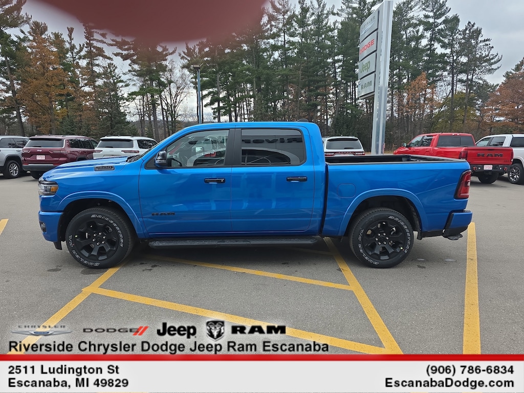 BIG HORN LEVEL 2 EQUIPMENT GROUP SiriusXM Radio Service, Power Adjustable Pedals, Leather Wrapped Steering Wheel, 12 Touchscreen Display, Glove Box Lamp, Auto Power-Folding Mirrors, 115V Auxiliary Rear Power Outlet, Media Hub w/2 Charge Only USBs, Heated Front Seats, Security Alarm, Black Premium Power Mirrors, Premium Overhead Console, 9 Amplified Speakers w/Subwoofer, Disassociated Touchscreen Display, Body Color Fender Flares, Remote Tailgate Release, 115V Auxiliary Power Outlet, LED Dome Lamp w/On/Off Switch, Universal Garage Door Opener, 2nd Row In Floor Storage Bins, Sun Visors w/Illuminated Vanity Mirrors, LED Footwell Lighting, Rear Window Defroster, Rear View Auto Dim Mirror, Rear Power Sliding Window, GPS Navigation, Overhead LED Lamps, Wheels: 20 x 9 Aluminum Chrome Clad, ENGINE: 3.0L I6 HURRICANE SO TWIN TURBO ESS Aux Battery, 700 Amp Maintenance Free Battery, Active Noise Control System, GVWR: 7,100 lbs, 3.55 Rear Axle Ratio, Dual Rear Exhaust w/Bright Tips, Start-Stop Dual Battery System, 230 Amp Alternator, NIGHT EDITION Tires: 275/55R20 OWL All Season, Bridgestone Brand Tires, Accent Color Premium Power Mirrors, Exterior Mirrors w/Supplemental Signals, Black Headlamp Bezels, Exterior Mirrors Courtesy Lamps, Grille Black Surround Black Mesh, Auto Power-Folding Mirrors, Wheels: 20 x 9.0 Aluminum Painted Clad, Auto Dim Exterior Driver Mirror, Black Exterior Truck Badging, Anti-Spin Differential Rear Axle, Accent Color Door Handles, Accent Color Tailgate Handle, Black Interior Accents, Dual Exhaust w/Black Tips, Body Color Front Bumper, Body Color Rear Bumper w/Step Pads, Black Tail Lamp Bezels, RAM Grille Badge - Black, Black Painted Exterior Mirrors Caps, BED UTILITY GROUP MOPAR Spray In Bedliner, MOPAR 4 Adjustable Cargo Tie-Down Hooks, Pick-Up Box Lighting, Exterior 115V AC Outlet, MOPAR BLACK TUBULAR SIDE STEPS, TRANSMISSION: 8-SPEED AUTOMATIC (8HP75). Ram Big Horn with Hydro Blue Pearlcoat exterior and Black interior features a Straight 6 Cylinder Engine with 305 HP at 6400 RPM*.