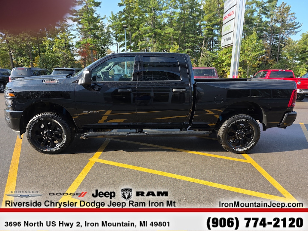 BIG HORN LEVEL 2 PLUS EQUIPMENT GROUP Surround View Camera System, Blind Spot & Cross Path Detection, LED Tail Lamps, Red Tail Lamp Bezels, Power Adjustable Pedals, Emergency Vehicle Alert System (EVAS), 12 Touchscreen Display, Glove Box Lamp, Auto Power-Folding Mirrors, Footwell Courtesy Lamp, 115V Auxiliary Rear Power Outlet, Media Hub w/2 Charge Only USBs, Anti-Spin Differential Rear Axle, Drowsy Driver Detection, Heated Front Seats, MOPAR Deployable Bed Step, Exterior 115V AC Outlet, Alexa Built-In, Active Lane Management System, Forward & Reverse Utility Lights, Locking Lower Glove Box, Remote Start System, 9 Alpine Speakers w/Subwoofer, Disassociated Touchscreen Display, Dual Wireless Charging Pad, Trailer Tire Pressure Monitoring System, Dual Glove Boxes, 115V Auxiliary Front Power, NIGHT EDITION Gloss Black Nostrils/Mic Black Grille, Tires: LT285/60R20E OWL On/Off Road, Black Exterior Truck Badging, Wheels: 20 x 8.0 Black Painted Aluminum, Body Color Grille-Surround, Black Interior Accents, Black Wheel Center Hub, Painted Front Bumper, Painted Rear Bumper, PAINTED FLAT WHEEL-TO-WHEEL SIDE STEPS, MOPAR FRONT & REAR RUBBER FLOOR MATS, TRANSMISSION: 8-SPEED AUTO (8HP75-LCV) (STD), ENGINE: 6.4L V8 HEMI HD (STD), BLACK, PREMIUM CLOTH BUCKET SEATS Bucket Seats, Power Adjust 8-Way Driver Seat, Folding Flat Load Floor Storage, Rear 60/40 Folding Seat, Front Seat Back Map Pockets, Power 2-Way Driver Lumbar Adjust, Full Length Upgraded Floor Console. Privacy Glass, Keyless Entry, Child Safety Locks, Electronic Stability Control, Brake Assist.