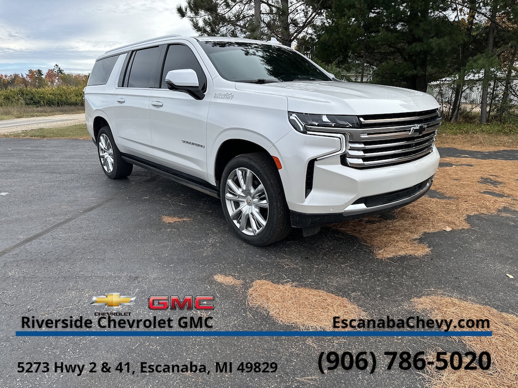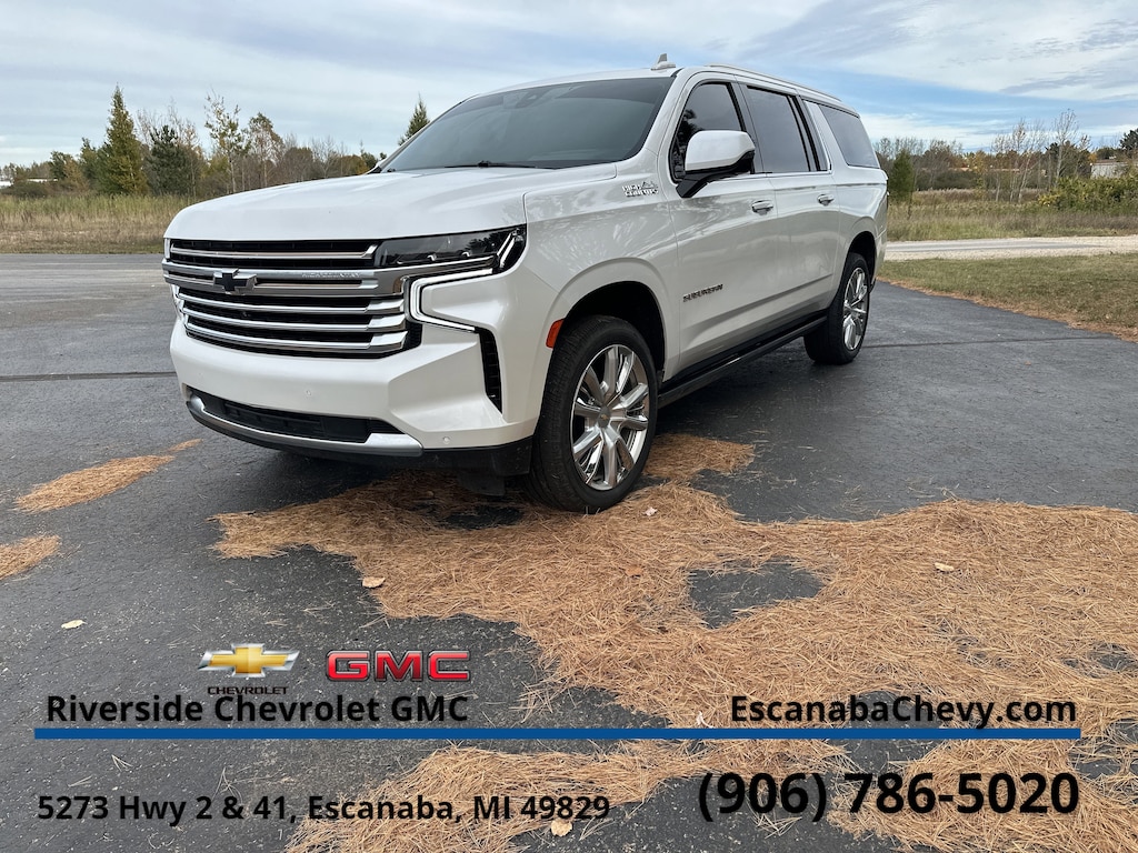 PREMIUM PACKAGE includes (NHT) Max Trailering Package, (C3U) Panoramic power sunroof and (KSG) Adaptive Cruise Control (Also includes (B3L) power-retractable assist steps with perimeter lighting. REAR SEAT MEDIA SYSTEM includes dual rear seat-mounted 12.6 diagonal color-touch LCD HD screens, Wi-Fi wireless projection capability, two 2-channel wireless infrared digital headphones with 2 HDMI ports on the back of the center console; compatible with Bluetooth® headphones, AUDIO SYSTEM, CHEVROLET INFOTAINMENT 3 PREMIUM SYSTEM WITH CONNECTED NAVIGATION, 10.2 DIAGONAL HD COLOR TOUCHSCREEN AM/FM stereo, Bluetooth® audio streaming for 2 active devices, Apple CarPlay® and Android Auto® capable, enhanced voice recognition, additional memory for in-vehicle apps, cloud connected personalization for select infotainment and vehicle settings. Subscription required for enhanced and connected services after trial period. (STD), ENGINE, 6.2L ECOTEC3 V8 with Dynamic Fuel Management, Direct Injection and Variable Valve Timing, includes aluminum block construction (420 hp [313 kW] @ 5600 rpm, 460 lb-ft of torque [624 Nm] @ 4100 rpm) (STD), TRANSMISSION, 10-SPEED AUTOMATIC electronically controlled with overdrive, includes Traction Select System including tow/haul (Most vehicles built on or after 6-7-2021 with a V8 engine will have (NSS) Not Equipped with Automatic Stop/Start, which removes Automatic Stop/Start, Engine control stop/start disable button and its content.) (STD), ADVANCED TRAILERING PACKAGE includes (PZ8) Hitch Guidance with Hitch View, (JL1) trailer brake controller and (U1D) Advanced Trailering System Also includes (UKV) Extended Side Blind Zone Alert.).