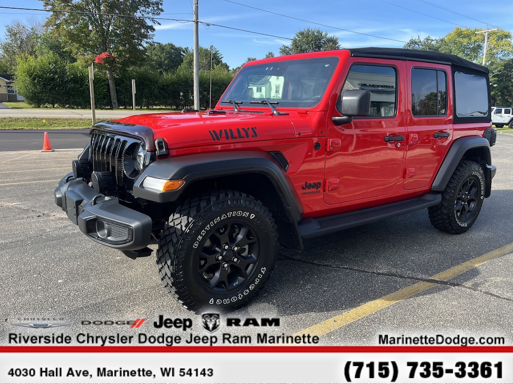 4x4, Back-Up Camera, iPod/MP3 Input, Bluetooth®, Aluminum Wheels, Keyless Start. MP3 Player, Privacy Glass, Steering Wheel Controls, Child Safety Locks, Rollover Protection System. Jeep Unlimited Willys with Firecracker Red Clearcoat exterior and Black interior features a V6 Cylinder Engine with 285 HP at 6400 RPM*.