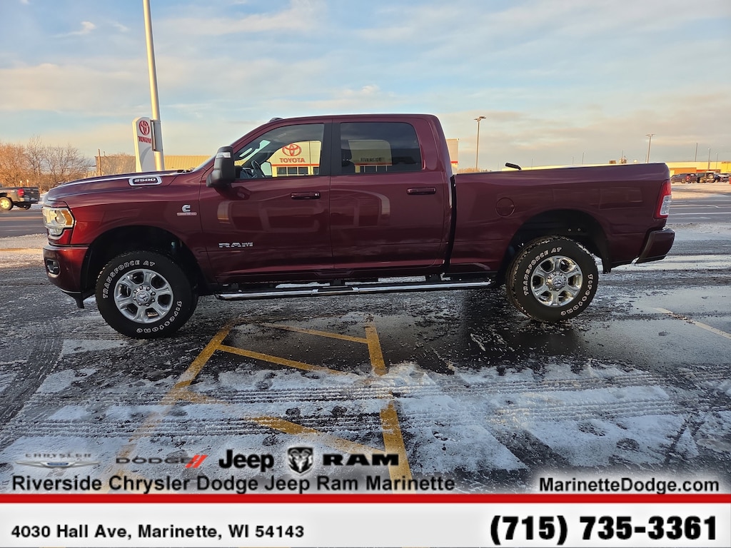 ENGINE: 6.7L I6 CUMMINS TURBO DIESEL Selective Catalytic Reduction (Urea), Dual 730 Amp Maintenance Free Batteries, Cummins Turbo Diesel Badge, Heavy Duty Engine Cooling, Tow Hooks, Diesel Exhaust Brake, Supplemental Heater, Front Bumper Sight Shields, Capless Fuel Fill w/o Discriminator, LEVEL 1 EQUIPMENT GROUP Google Android Auto®, For Details, Visit DriveUconnect.com, For More Info, Call 800-643-2112, Leather Wrapped Steering Wheel, Rear Dome w/On/Off Switch Lamp, Front Fog Lamps, Glove Box Lamp, Auto Power-Folding Mirrors, Footwell Courtesy Lamp, 4G LTE Wi-Fi Hot Spot, Mirror Running Lights, Radio: Uconnect 5 W w/8.4 Display, 8.4 Touchscreen Display, Foam Bottle Insert (Door Trim Panel), Apple CarPlay®, Big Horn IP Badge, Power Adjustable Convex Aux Mirrors, Forward & Reverse Utility Lights, Locking Lower Glove Box, Selectable Tire Fill Alert, SiriusXM Satellite Radio, Power Heated Fold Telescope Mirrors, Exterior Mirrors w/Supplemental Signals, Steering Wheel Mounted Audio Controls, Exterior Mirrors Courtesy Lamps, Dual Glove Boxes, 2nd Row In Floor Storage Bins, Power, RADIO: UCONNECT 5 NAV W/8.4 DISPLAY Google Android Auto®, For Details, Visit DriveUconnect.com, For More Info, Call 800-643-2112, GPS Navigation, 4G LTE Wi-Fi Hot Spot, SiriusXM w/360L, Connected Travel & Traffic Services, All R1 High Radios, 8.4 Touchscreen Display, Alexa Built-In, Apple CarPlay®, Off-Road Information Pages, Selectable Tire Fill Alert, Trailer Tow Pages, Disassociated Touchscreen Display, HD Radio, Air Conditioning ATC w/Dual Zone Control, All Radio Equipped Vehicles, CHROME FLAT WHEEL-TO-WHEEL SIDE STEPS, ANTI-SPIN DIFFERENTIAL REAR AXLE, HEATED SEATS & WHEEL GROUP Heated Steering Wheel, Steering Wheel Mounted Audio Controls, Heated Front Seats, Leather Wrapped Steering Wheel, BLACK, PREMIUM CLOTH BUCKET SEATS Bucket Seats, Manual Adjust 4-Way Front Passenger Seat, Power Adjust 8-Way Driver Seat, Rear 60/40 Folding Seat, Front Seat Back Map Pockets, Power 2-Way Driver Lumbar Adjust, Full Length Upgraded Floor Console, REMOTE START SYSTEM, TRANSMISSION: 6-SPEED AUTOMATIC (68RFE). AutoCheck One Owner